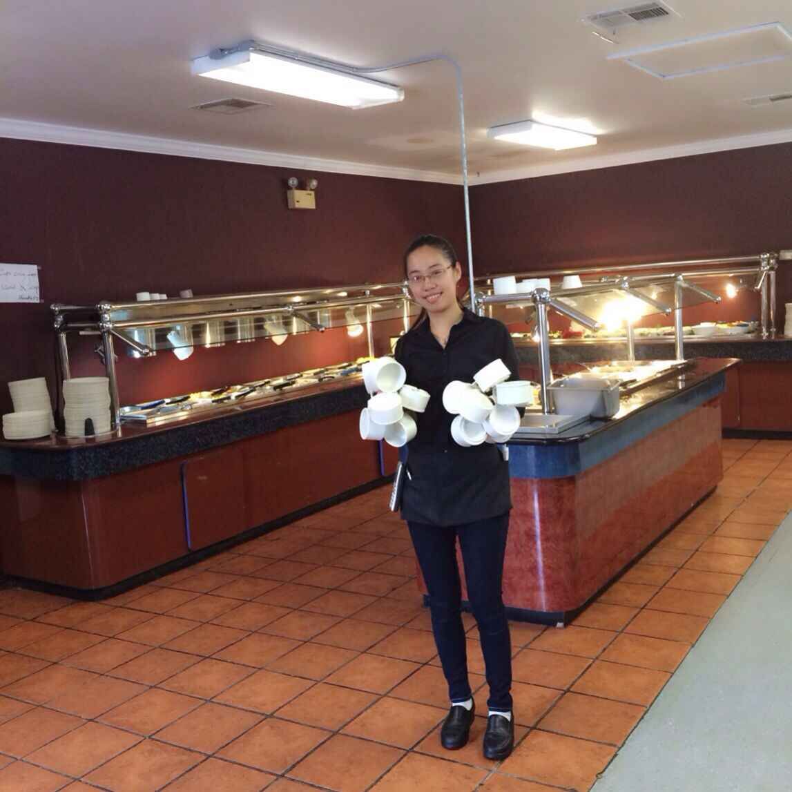 梁春燕在餐厅里帮忙 “大厨师”梁春燕在餐厅帮忙 梁春燕与员工在餐厅门口合影 “我建议,学校要有输送优秀学生到国外学习的机制,这样我们的学生才有可能成为国际型人才。”梁春...