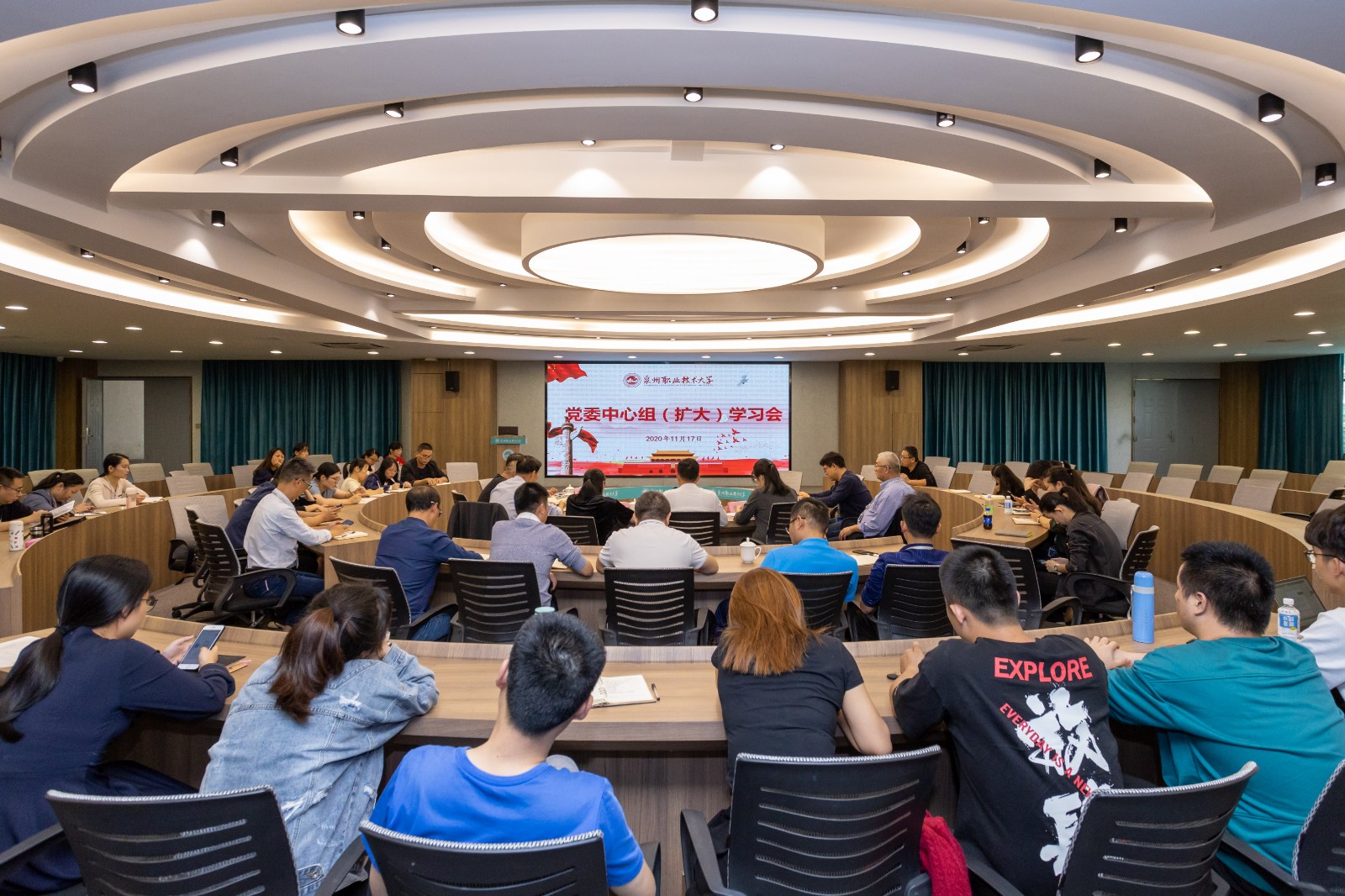11月5日,学校党委书记傅志雄主持召开了党委理论学习中心组(扩大)学习会,深入学习贯彻党的十九届五中全会精神,马克思主义学院院长来永宝教授导读。 来永宝教授带领大家深入学习领会党的十九届五中全会的重大意...