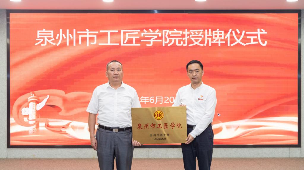 6月20日上午,泉州市工匠学院授牌仪式在我校A301国际会议厅举行。泉州市总工会党组成员、副主席江永清,晋江市总工会党组成员、副主席颜玉苗,泉州市总工会劳动部副部长田娟、晋江市总工会劳动部部长许章润出席授牌仪式,我校党委书记傅志雄、副校长林文艺及二级学院院长、书记参加仪式。此次命名挂牌工匠学院是发挥劳模工匠引领作用、提高产业工人队伍素质、推进新时代产业工人队伍建设改革的创新举措,目的就是要大力弘扬劳模...