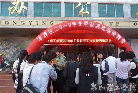 10月 26日下午 4:30,“丰泽区2010年冬季征兵工作宣传咨询会”在我校思恩楼办公大厅门口举行,众多学生聚集会场了解2010年冬季征兵的相关信息。本次活动由我校征兵办与丰泽区征兵办联合开展,集中向同学们宣传了...