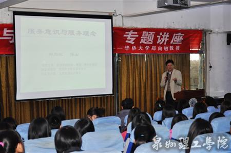 “酒店是什么?服务是什么?客人是什么?” 3月23日下午,华侨大学旅游学院院长、国家教育部旅游高职高专教学指导委员会副主任委员郑向敏教授到泉州理工学院为商贸系学生开展“服务意识”专题讲座,泉州理工学院校...