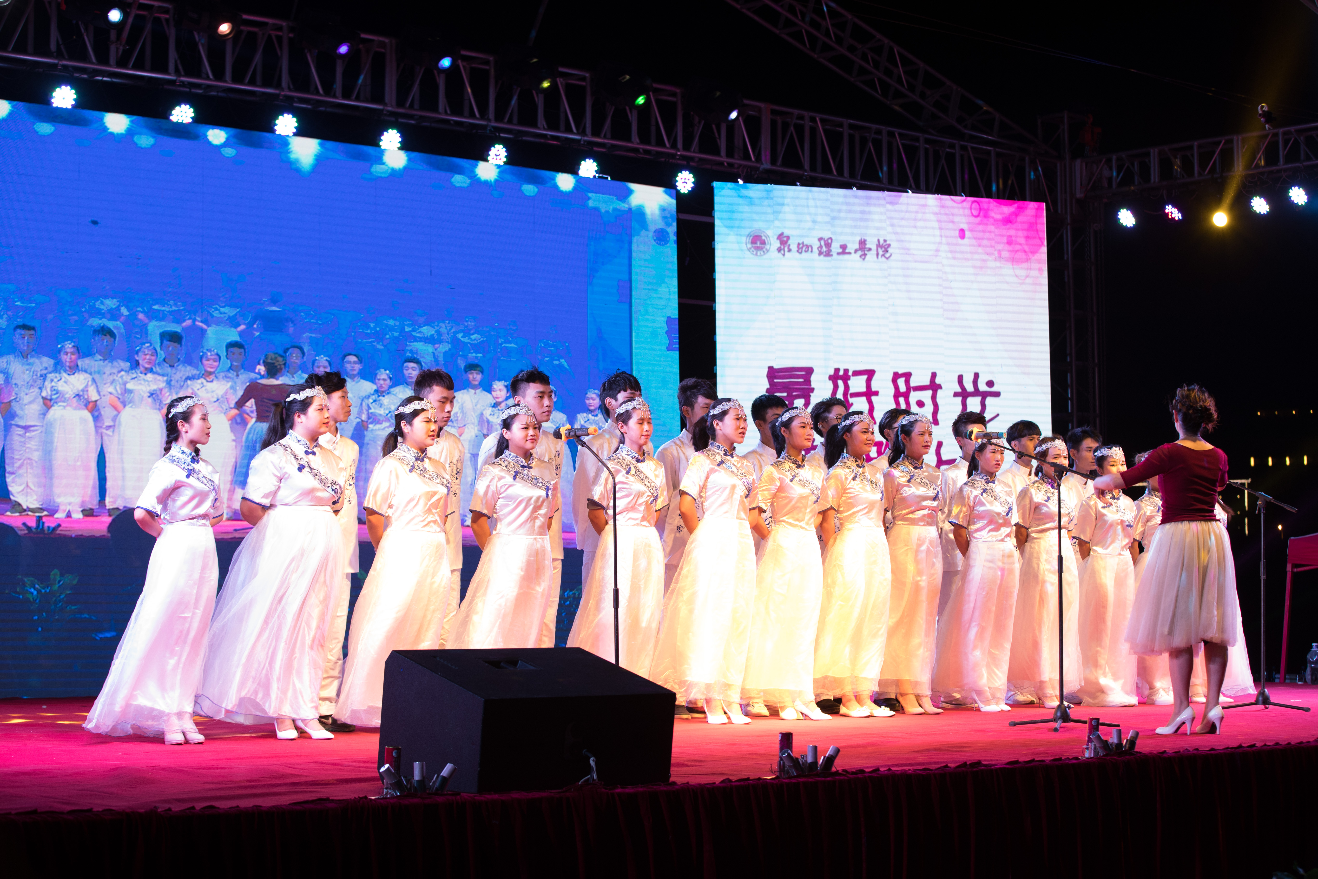 “聚力奋进三十年,最好时光在路上” 纪念学校办学30年暨2016迎新生文艺晚会在学校体育场举行。吴金营董事长、林其天书记及各部门、院系领导老师与部分校友,全体在校生一起观看了晚会。