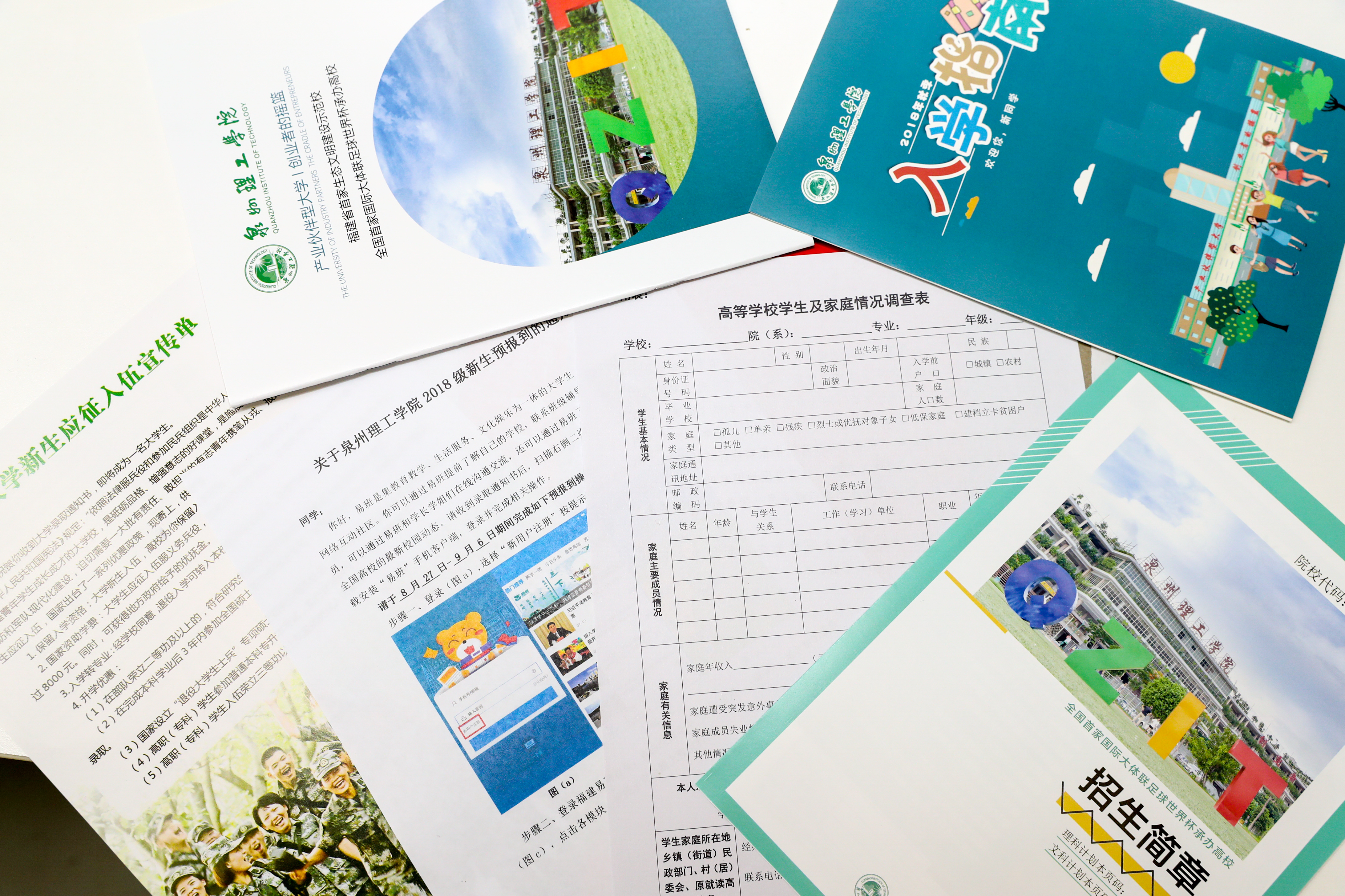 各位2018级的新理工人,全新设计的录取通知书已整装待发,将会飞奔到大家手上。老师和学长学姐们精心地包装好每一份通知书,除了通知书之外,包含入学指南、高校本专科学生资助政策简介、大学生金融知识教育、泉州理工学院招生简章、泉州理工学院画册、高等学校学生及家庭情况调查表、易班预报到注册通知、大学生应征入伍宣传单等。