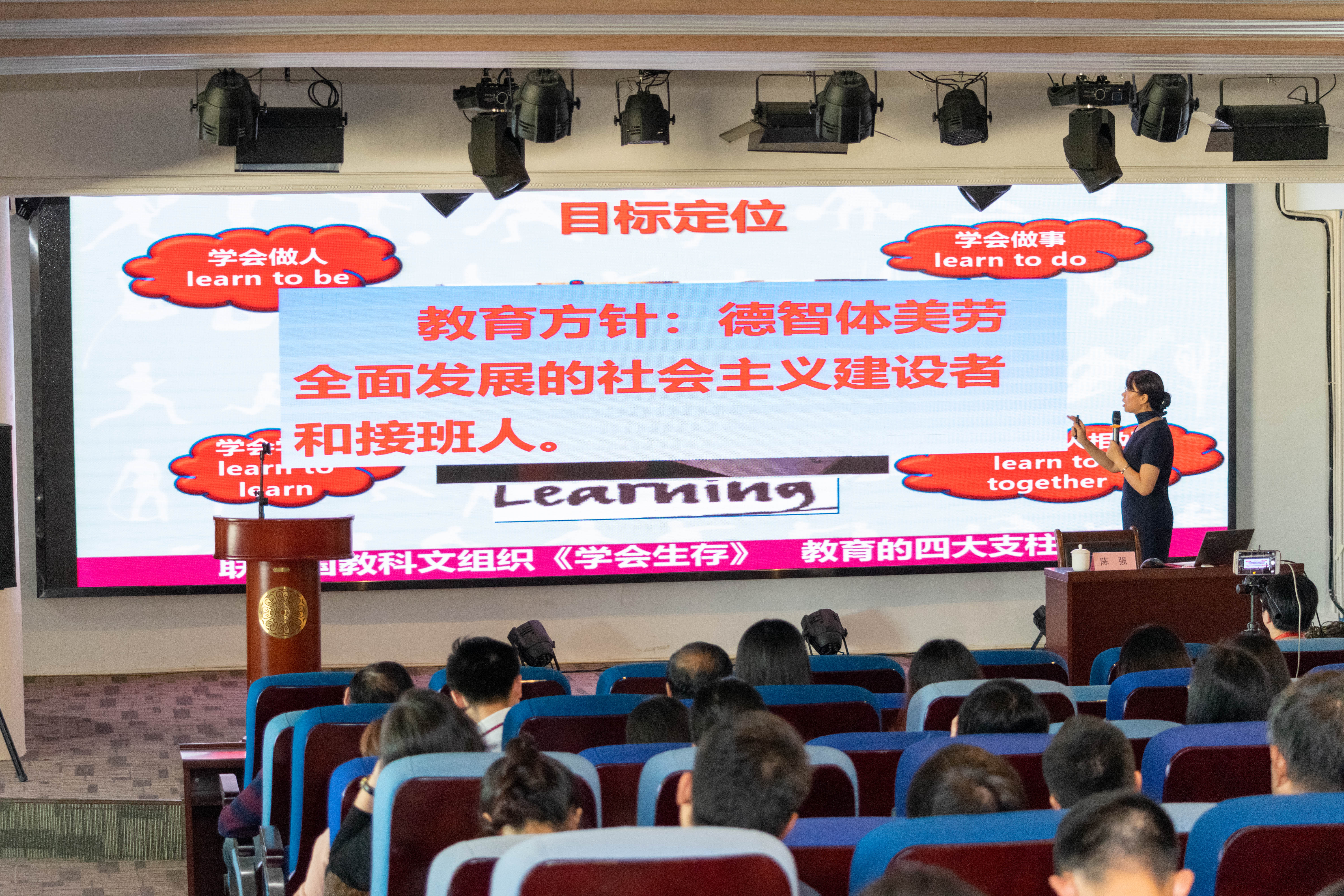 陈教授表示现在的时代为终身学习时代,要为不可预测的将来培养健康成长的学生,实现网络化、数字化、个性化、终身化的教育,教育主导、技术融合,要求教师要不断学习教育部等相关指导文件,领会相关政策。职业院校人才培养模式为培养创新型、发展型和复合型技术技能人才,具体培养方法需落实到产教融合、校企合作、工学结合、知行合一,协同育人、立德树人。在制定专业人才培养方案时,以立德树人为根本,培养学生的素质、知识和能力,再依据学生已有的知识背景、认知结构、学习特点和专业人才培养方案进行教学目标设定。
