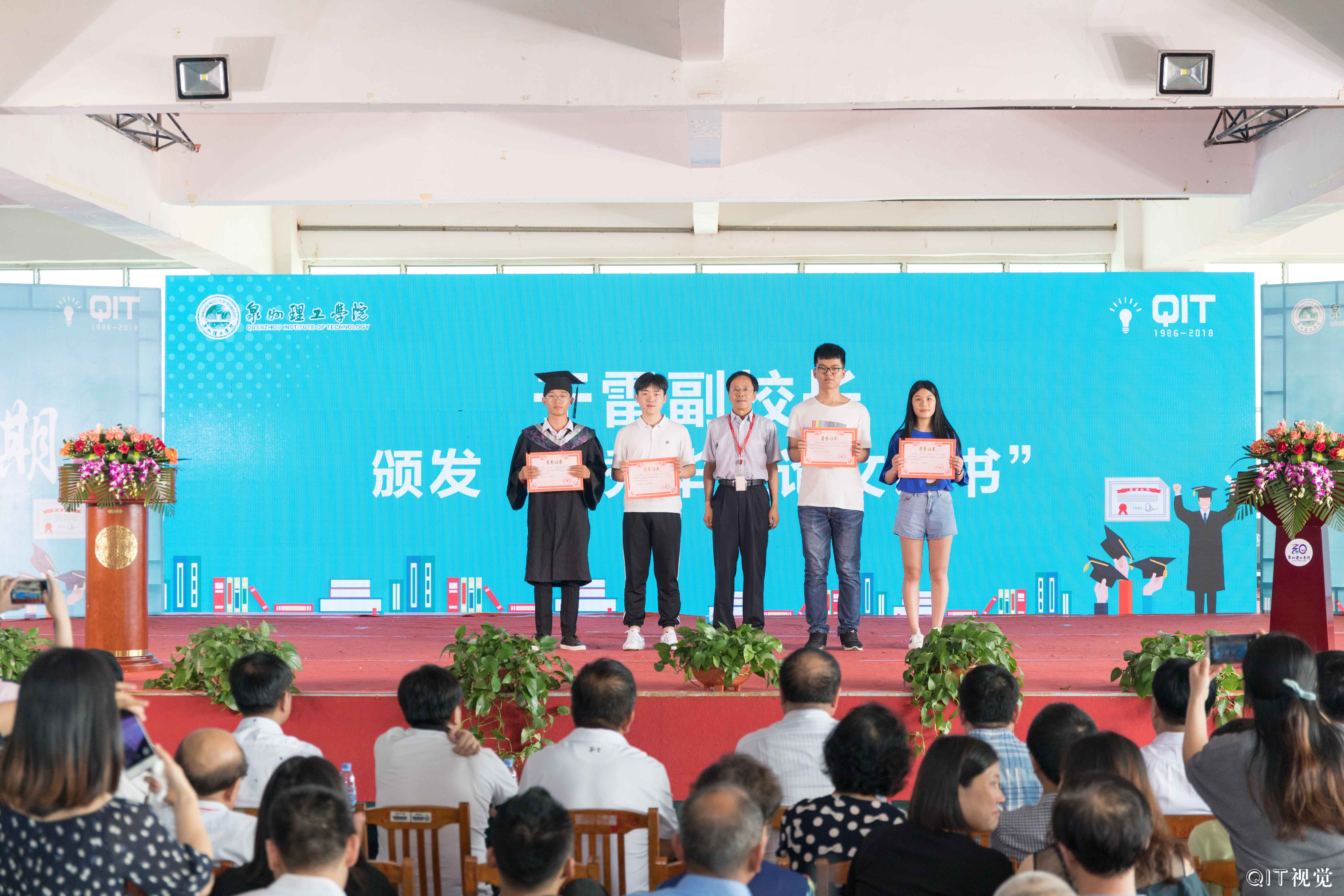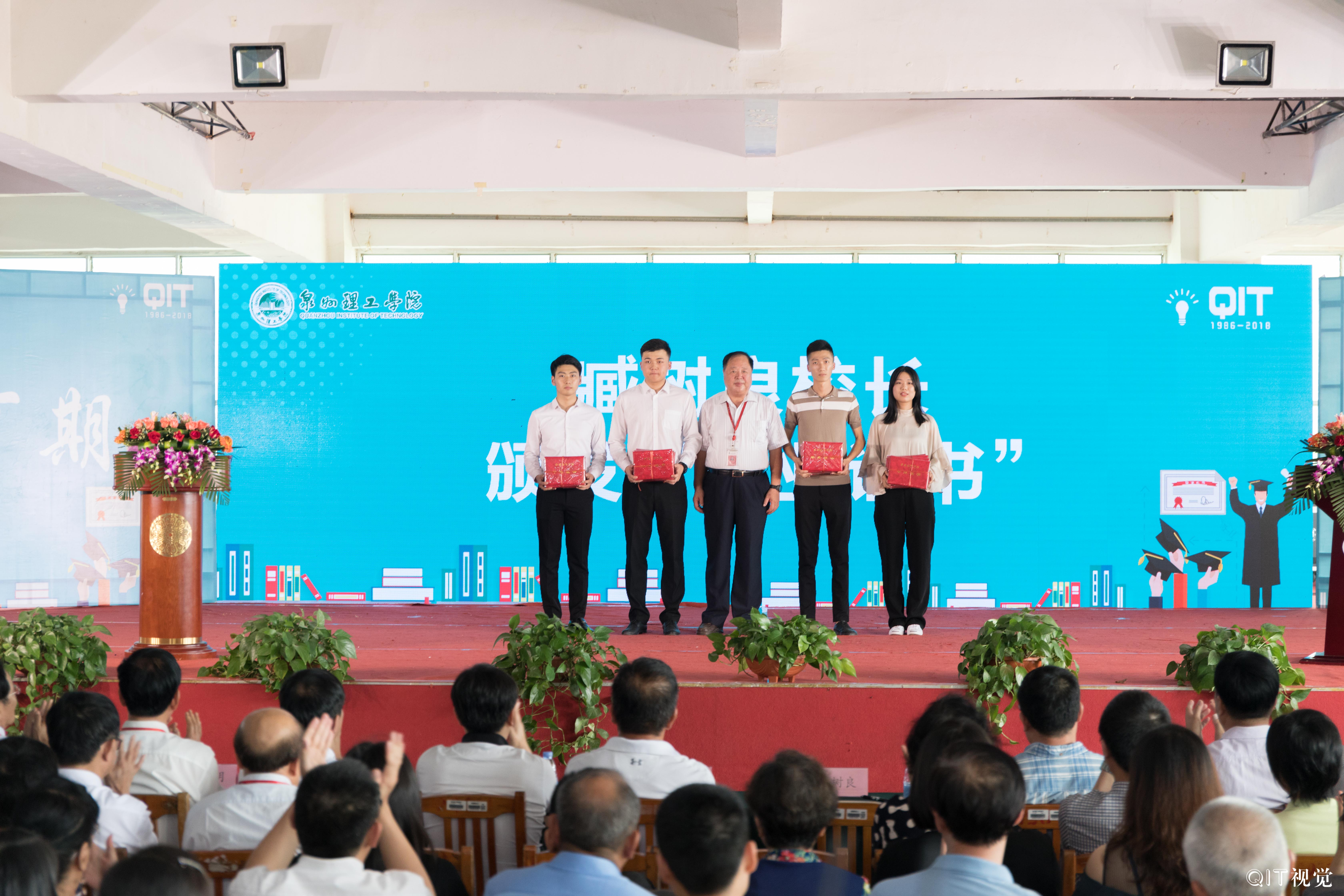 9日下午,泉州理工在西教小礼堂隆重举行2018毕业典礼,董事长吴金营、校长臧树良、书记林其天、名誉校长苏志明、副校长吴滨如、副校长于雷、副校长庄文端等校领导以及各院系、部门相关负责人、教职工、2018届全体毕业生参加典礼。出席典礼的嘉宾有泉州市高教办主任陈志刚、内坑镇政府副镇长张辉永、内坑派出所副所长张谋泽、创业者协会代表吕谊阳、杨江鸿、陈连套、校友代表黄腾蛟等人。典礼由校长助理郭霏霏主持。