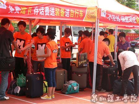 在泉州客运中心站、新车站、动车站等车站也安排了新生接待点。我校学生顶着烈日,高举着校牌,迎接新生们的到来。负责接待的同学热情地接过新生的行李,向他们介绍学院情况,并将他们带到学校接待处办理入学手续,安排好各项事宜。
