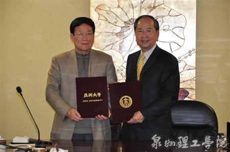 会上,亚洲大学副校长彭作奎教授及招生委员会副主任黄万传教授给大家介绍了亚洲大学的基本情况及办学特色等,领导们还针对两岸高校的具体合作方式展开了深入热烈的讨论。最后,亚洲大学与到场的