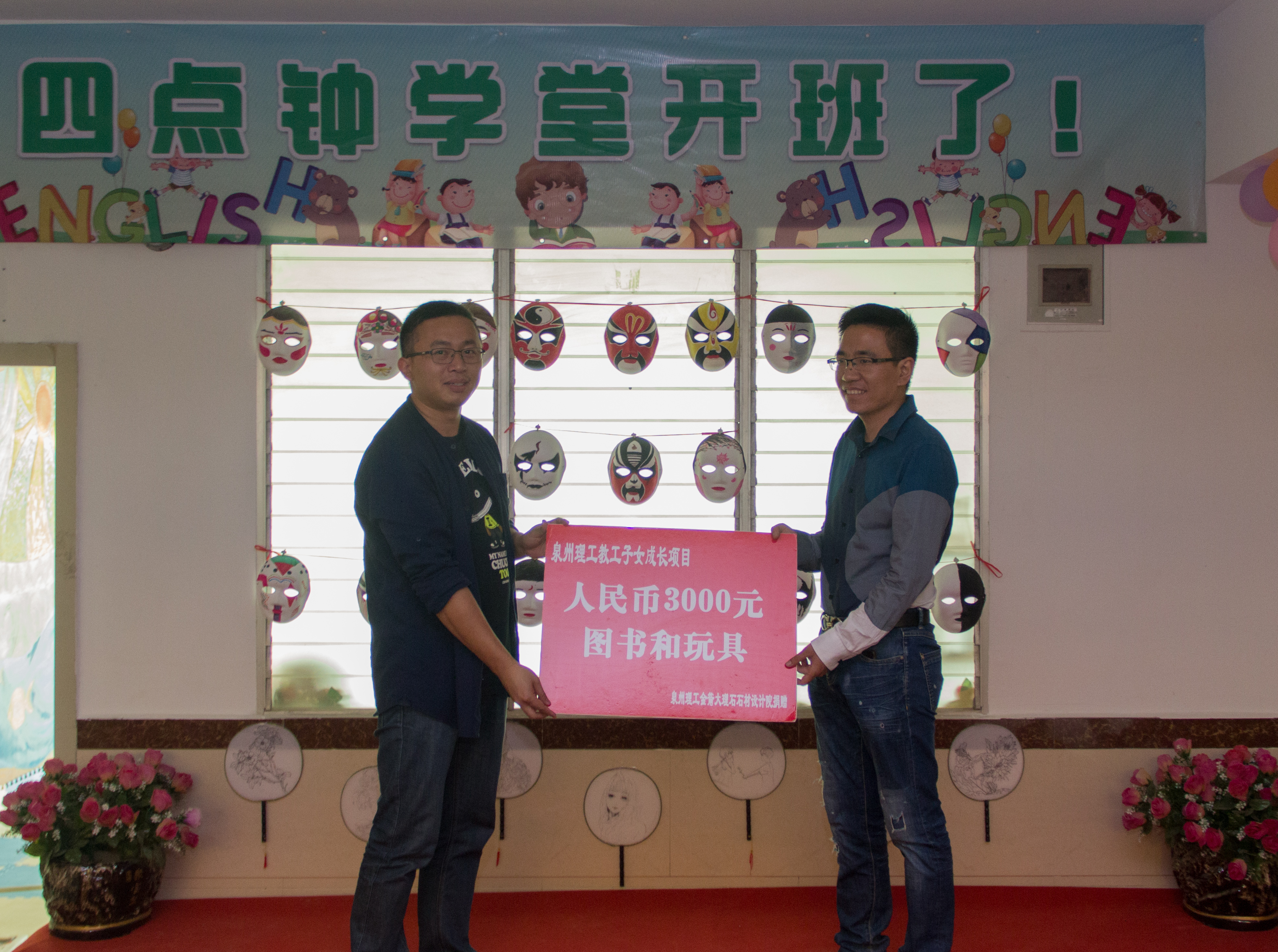在开班仪式开始之际,陈其生主席就四点钟学堂的创办初心和今天的开班仪式表示衷心的感谢和大力的支持,感谢建筑系工会能主动把这项工作承接下来,解决了孩子们放学早,全校教职工子女上班期间孩子无人看管的后顾之忧。泉州理工石材设计院董事长张翔鹏先生,在他了解到系部要成立这个四点钟学堂,且 “小老师们”都是我们的优秀贫困大学生时,直接提出从石材设计院拿出3000元资助我们的“小老师”,并为他们提供了石材设计院的工作岗位,还为四点钟学院捐赠了图书、玩具一批。