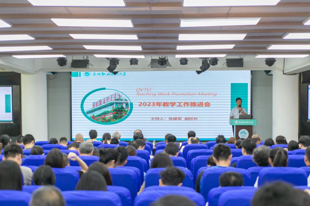 9月28日下午,泉州职业技术大学2023年教学工作推进会议在A633报告厅举行。校领导傅志雄、臧树良、林其天、来永宝、张建军、苏康敏等出席会议,学院领导、专业带头人、任课教师、教学秘书、学业辅导员,书院领导,教务处、质量评估处、人事处、学生工作处、就业指导中心、招生办公室等职能部门领导及相关人员参加。会议由副校长张建军主持。