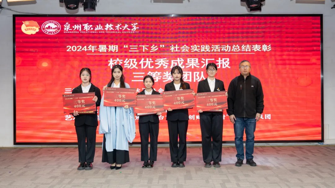 本次暑假社会实践共评选出校级“先进个人”50名、优秀工作者14名、优秀心得4篇、优秀调研报告12篇、优秀团队12支、优秀组织单位3个,并表彰我校在省教育工委主办的“追寻领袖足迹 体悟伟大变革”2024年全省大学生暑期社会实践活动优秀实践团队3支、优秀实践个人1名、优秀实践成果1项。
