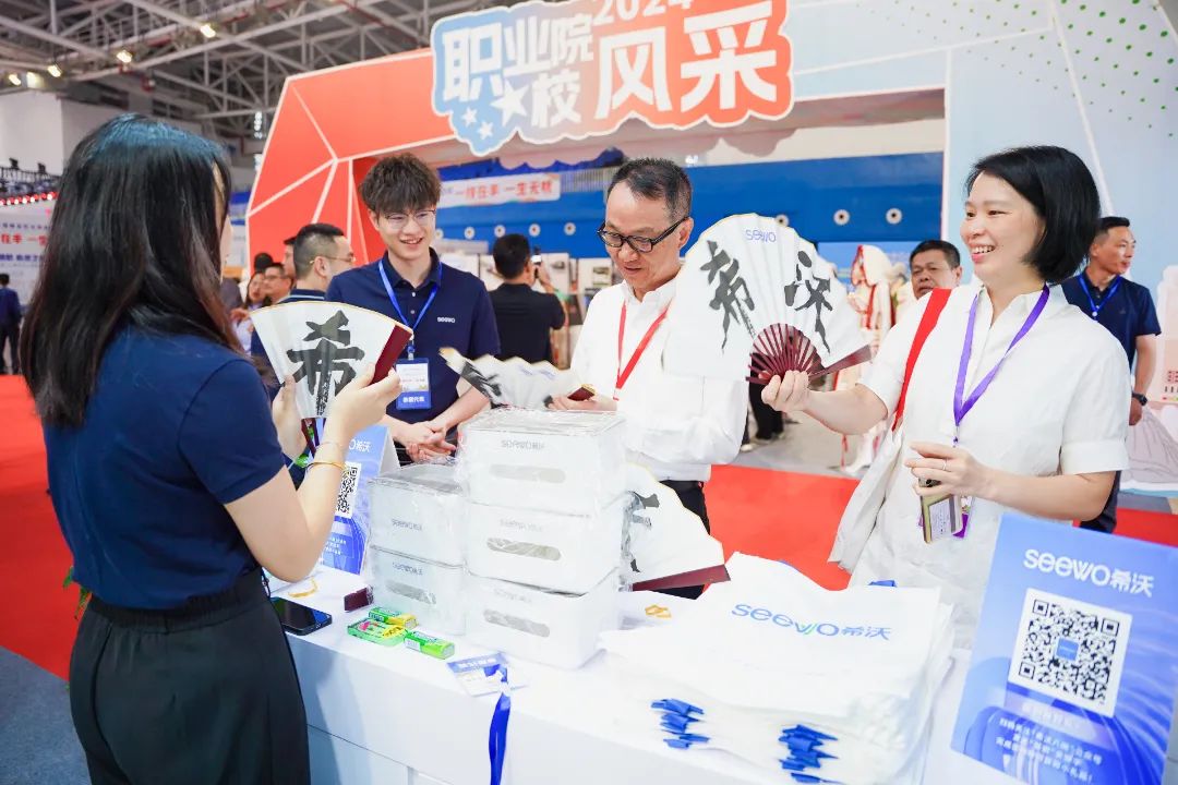 企业展区由华为、希沃、超星、锐捷、用友新道、奇安信、凌迪、索尼、北森生涯、国关智能心理等校企合作“天团”展示丰富的职业教育应用场景,提供多元沉浸式互动机会,还有晋江市域产教联合体牵头企业盼盼食品集团带来的高品质健康品牌新体验。