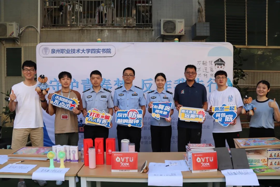 为增强在校师生的防诈意识,向大家普及关键的防诈骗知识与技巧,提高全校师生的防骗能力,泉州职业技术大学四实书院携手晋江市公安局内坑派出所、晋江市内坑镇综治中心,共同举办“守护青春梦,反诈我先行”主题反诈宣传活动。