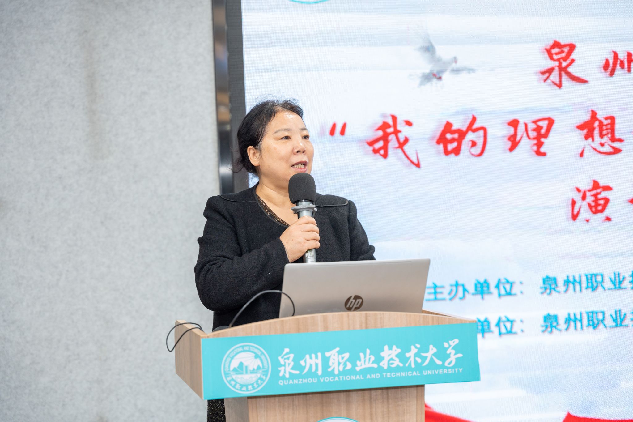 12月17日,泉州职业技术大学“我的理想——在泉大绽放青春”演讲比赛决赛于A301会议室举行。比赛旨在落实“大思政”育人理念,引导学生将个人理想融入学校发展与时代洪流,吸引了众多2025级新生积极参与。