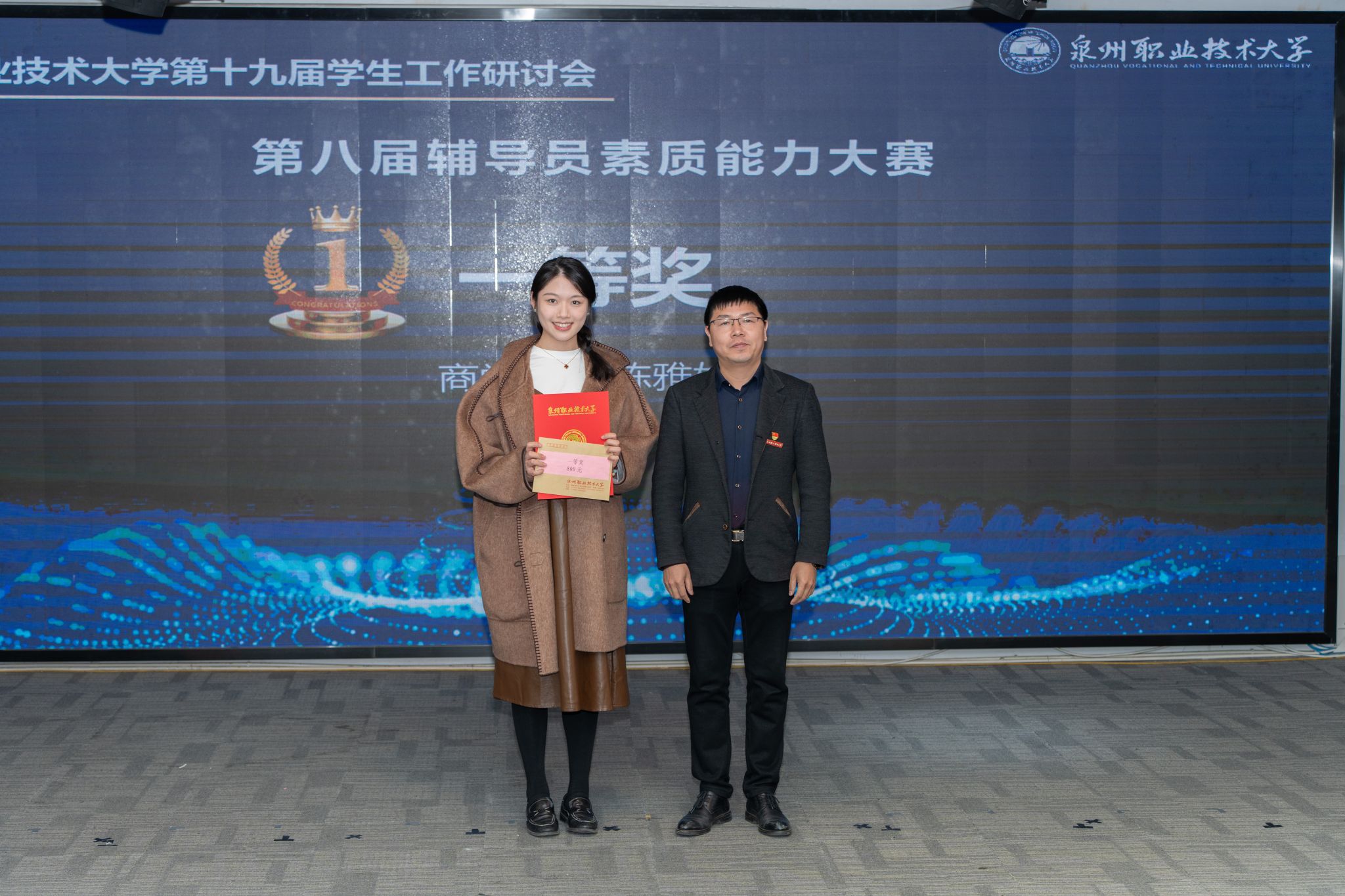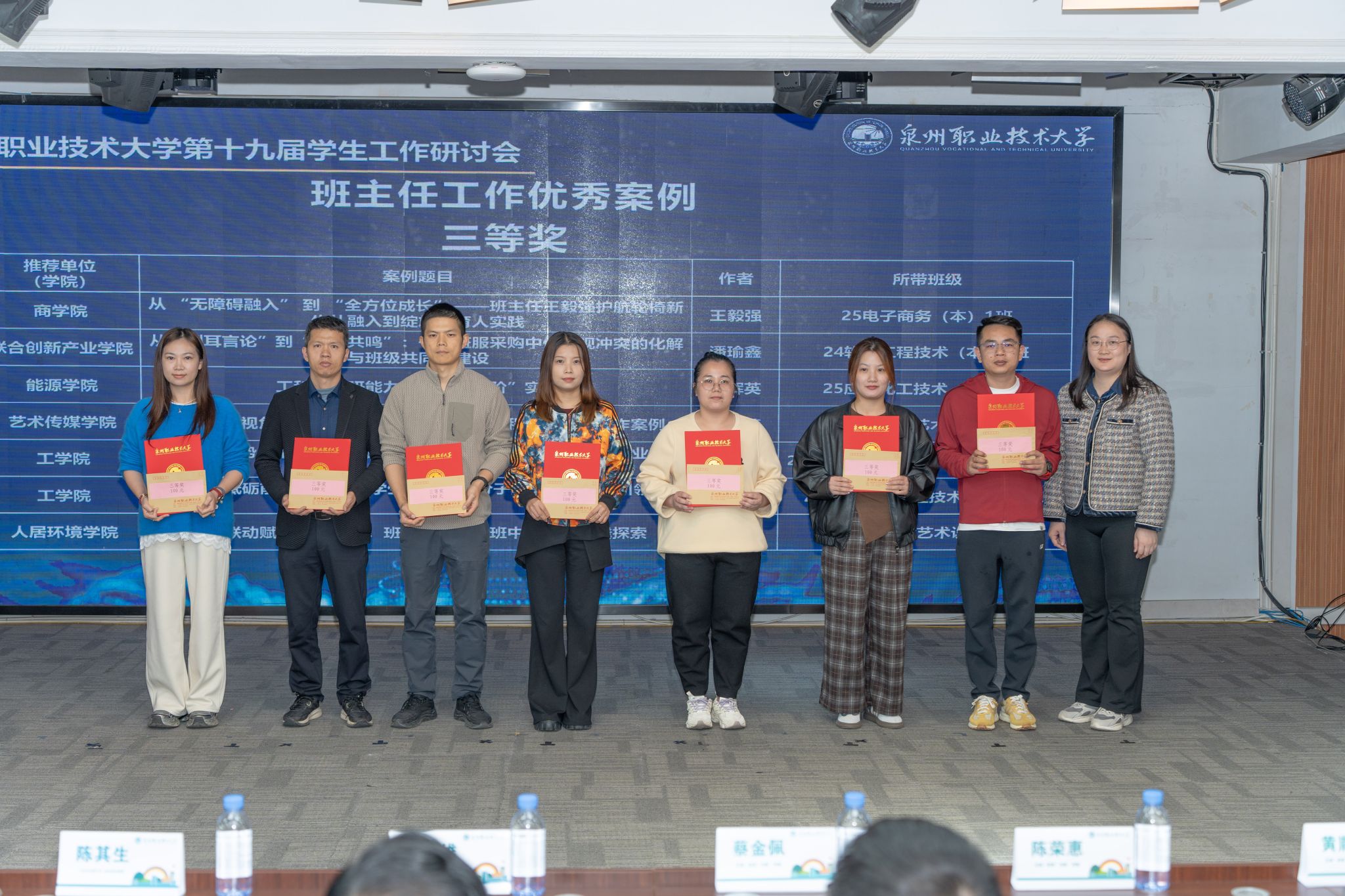 12月24日,迎来了研讨会的成果汇报及专项表彰。校党委书记傅志雄,校党委副书记、副校长蔡金佩,校工会主席陈其生,人事处、学工处、校团委负责人,各学院、书院主要负责人及全体辅导员、班主任参会。会议由学工处副处长朱冰梅主持。