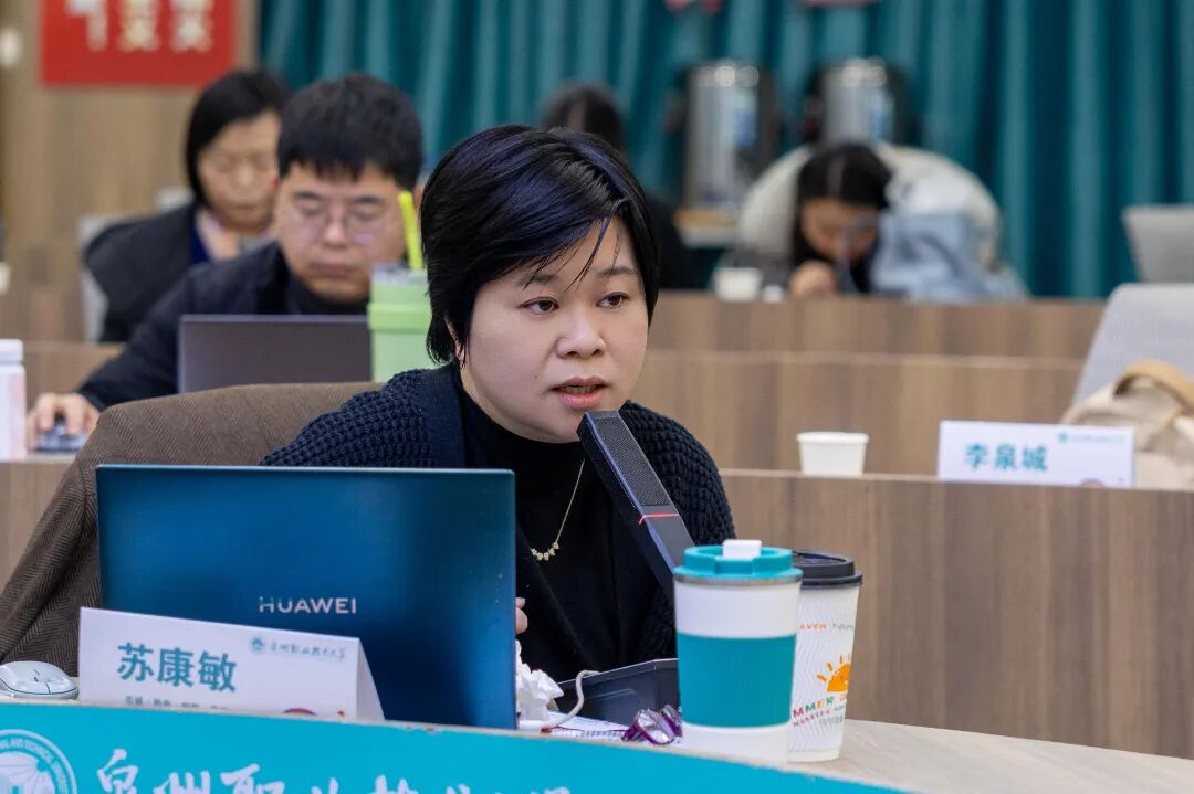 述职总结会上,吴滨如作《服务需求、深化产教城融合,提升关键办学能力》的主题报告,从“职业本科办学模式的思考”“产教城融合的探索与实践”“几点体会”三方面进行阐述,梳理学校扎根晋江、服务泉州、面向福建,主动对接服务区域产业发展和国家战略布局需求,围绕深化产教城融合,全速推进基于“产业伙伴型大学”和“市域产教联合体”双轮驱动的职业本科办学模式,推动学校高质量发展。她特别分享、解读了5个产教城融合的特色案例,分别是“以产定教”的省“双高”新一代信息技术专业群、“助产高端”的省“双高”智能装备制造专业群、“与产共荣”的国家“双高”电子商务专业群以及工艺美术专业群服务城市文旅产业、城市更新专业群服务未来城市建设,全面展示学校与城市、产业深度融合的实践探索及经验模式。