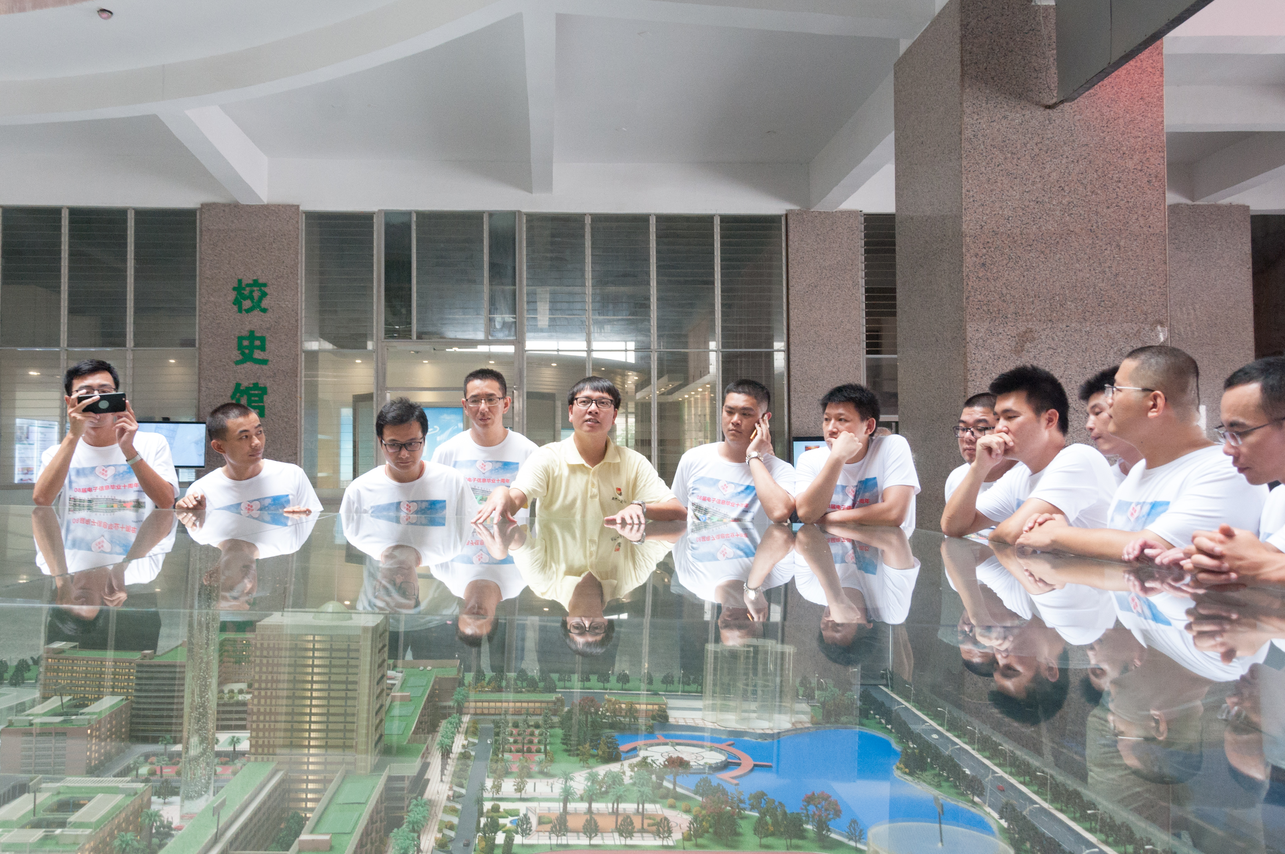 校友们穿着特制的纪念T恤,一同游览新校区,回忆校园点点滴滴。在参观校史馆后,看到学校取得的一项项傲人的成绩后,许多校友都不“淡定”了。“学校的变化真的太大了,环境更好,成绩更是喜人。”电子信息工程技术专业的傅东海高兴地说。在看到“永不止步”展区时,校友们纷纷驻足,一同回忆起曾经晨跑的日子。会计3班的陈琫珏激动地说:“看着这个展区,好多回忆都涌上来了,早锻炼真的是一生都无法忘怀的时光。”