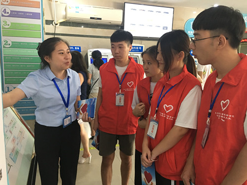 2018年8月6日上午8点,商学院“向日葵医护小分队”首批志愿者在商学院团总支书记罗永珍老师的带领下来到晋江市医院,开启2018年“助力医护,青年先行”暑期社会实践活动。本次暑期社会活动为期一个月(8月6日-9月1日),先后派出共8名同学,分为两个批次进行轮岗服务。