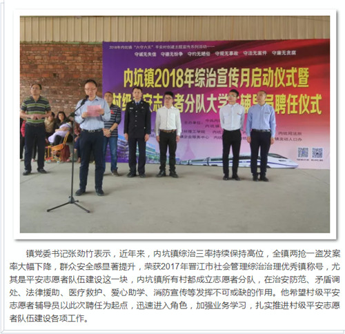 3月29日下午,内坑镇2018年综治宣传月启动仪式暨村级平安志愿者分队