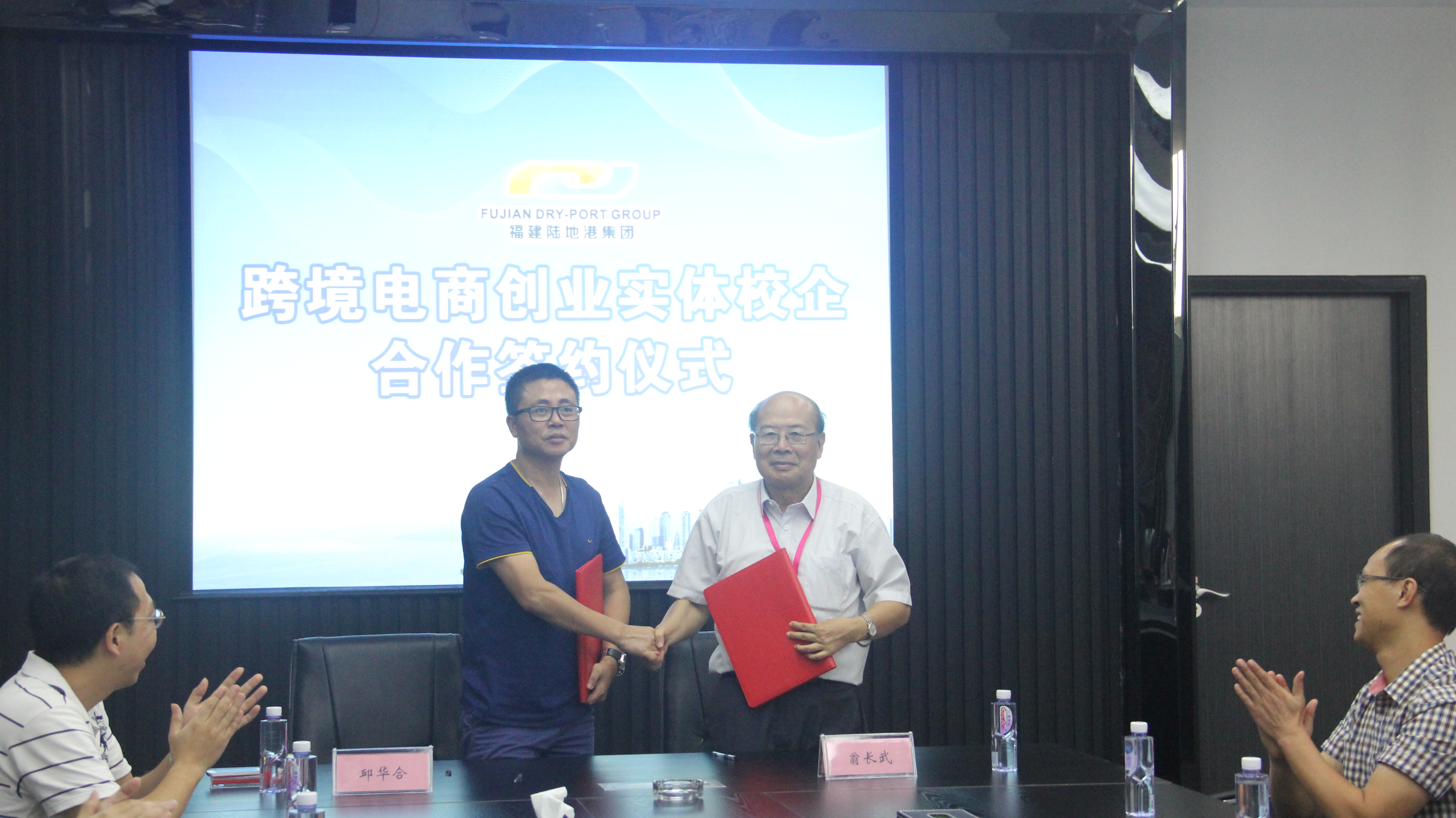 8 19 日上午 10 点,我校商学院院长翁长武与晋江陆地港跨境电商产业园负责人邱华合正式签署跨境电商创业实体项目,进一步为培养跨境电商人才赢得更好的平台和机会,也进一步深化了校企之间的合作关系。