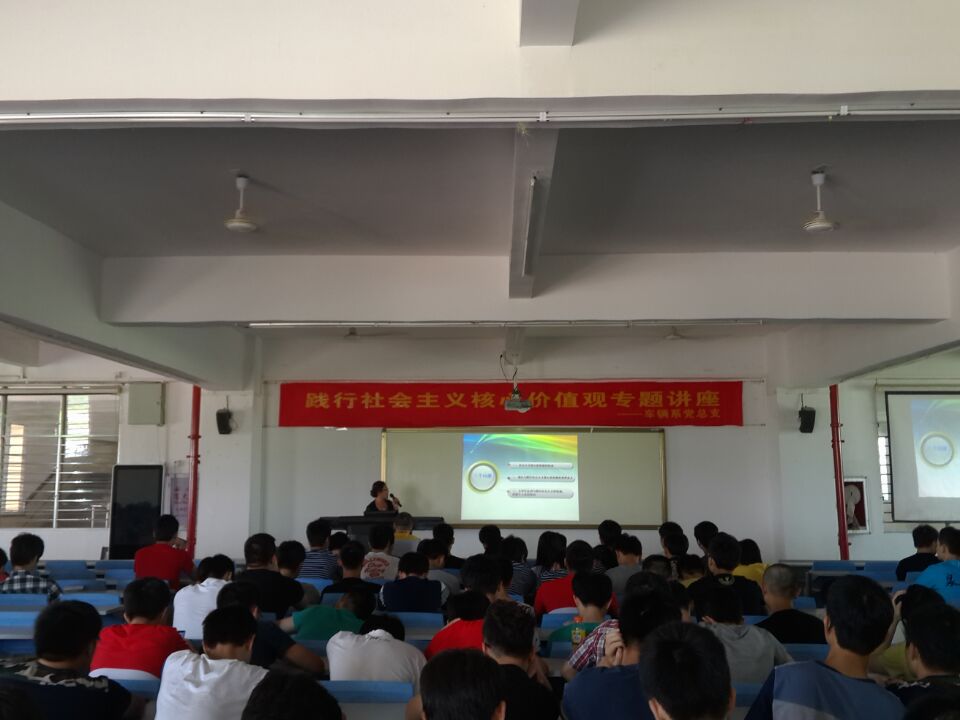 513日下午330分,由车辆工程系党总支举办的践行社会主义核心价值观“六个一”系列教育活动之聆听一场精品报告——“大学生认同和实践社会主义核心价值观”专题讲座,在238教室隆重举行。本次专题报告,邀请学校党委黄志梅副书记作为主讲嘉宾,同时到场的老师还有车辆系党总支书记吴茶水、党支部书记白一珊、系团总支书记林晓榕及14级辅导员黄胤聪。