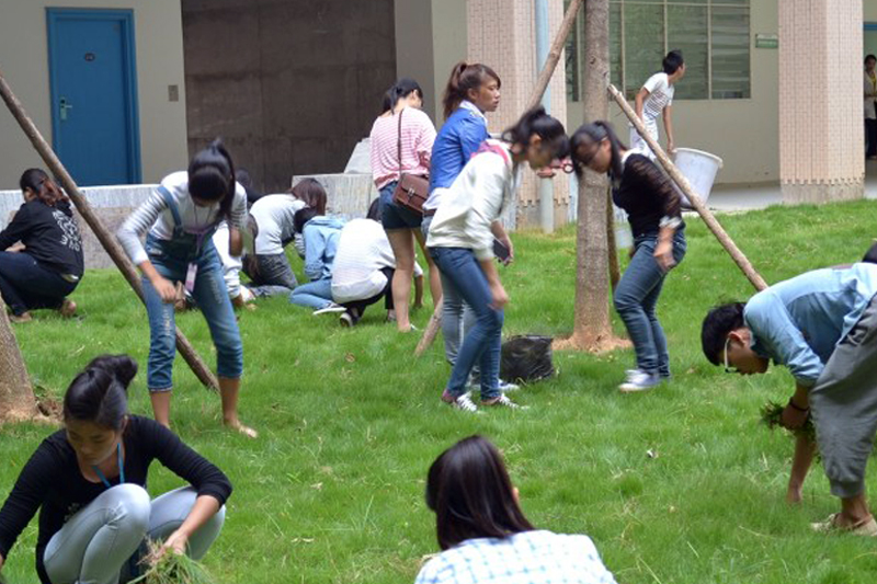 为积极响应学校号召,营造清洁舒适的学习和工作环境,2013年10月16日下午两点,财经系组织系志愿者开展拔除杂草、清理垃圾、美化校园志愿活动。