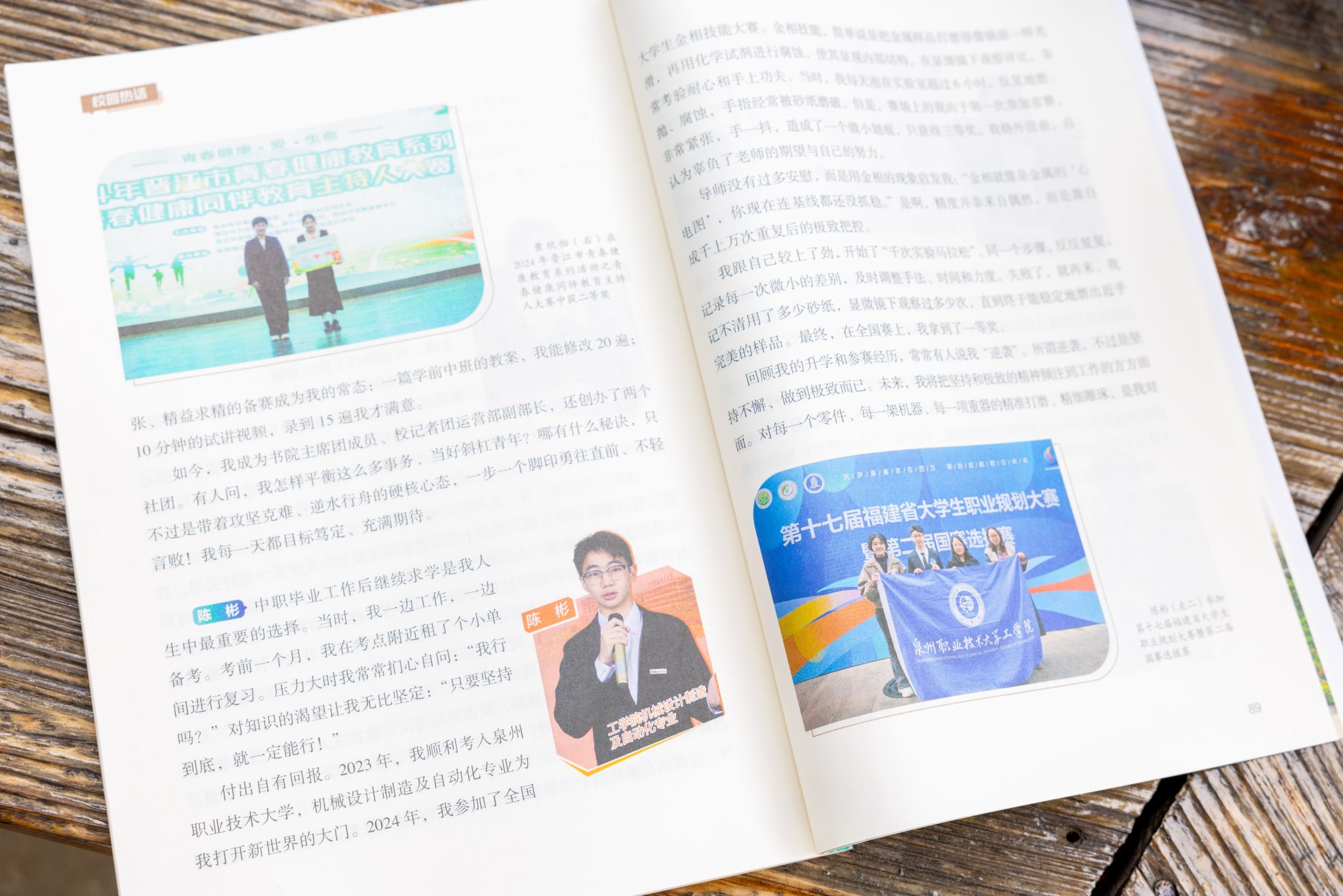 《时事·职教》是由《时事报告》杂志社主办,中共中央宣传部主管的全国性教育类期刊,创刊于2010年。此次专题报道,共刊出对我校10多位师生的谈访内容。今起,我们将陆续转发相关报道,首篇是方毅同学的相关文章。让我们一起来见证泉大人“坚持成就梦想”的故事!